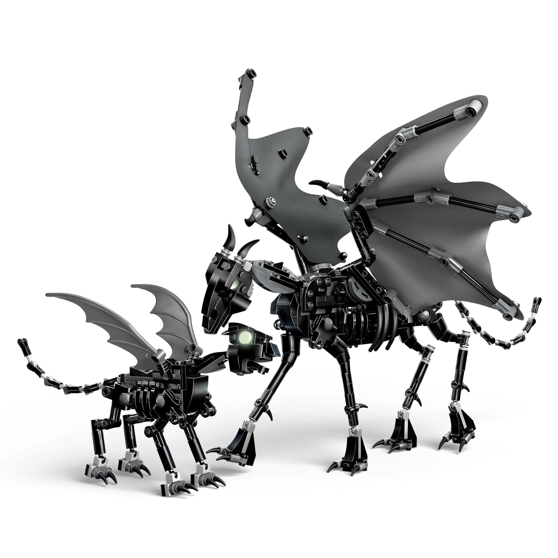 - Posable LEGO® Harry Potter™ collectible figures – Each Thestral figure has a posable head, wings and legs, and the adult Thestral has large, foldable fabric wings
