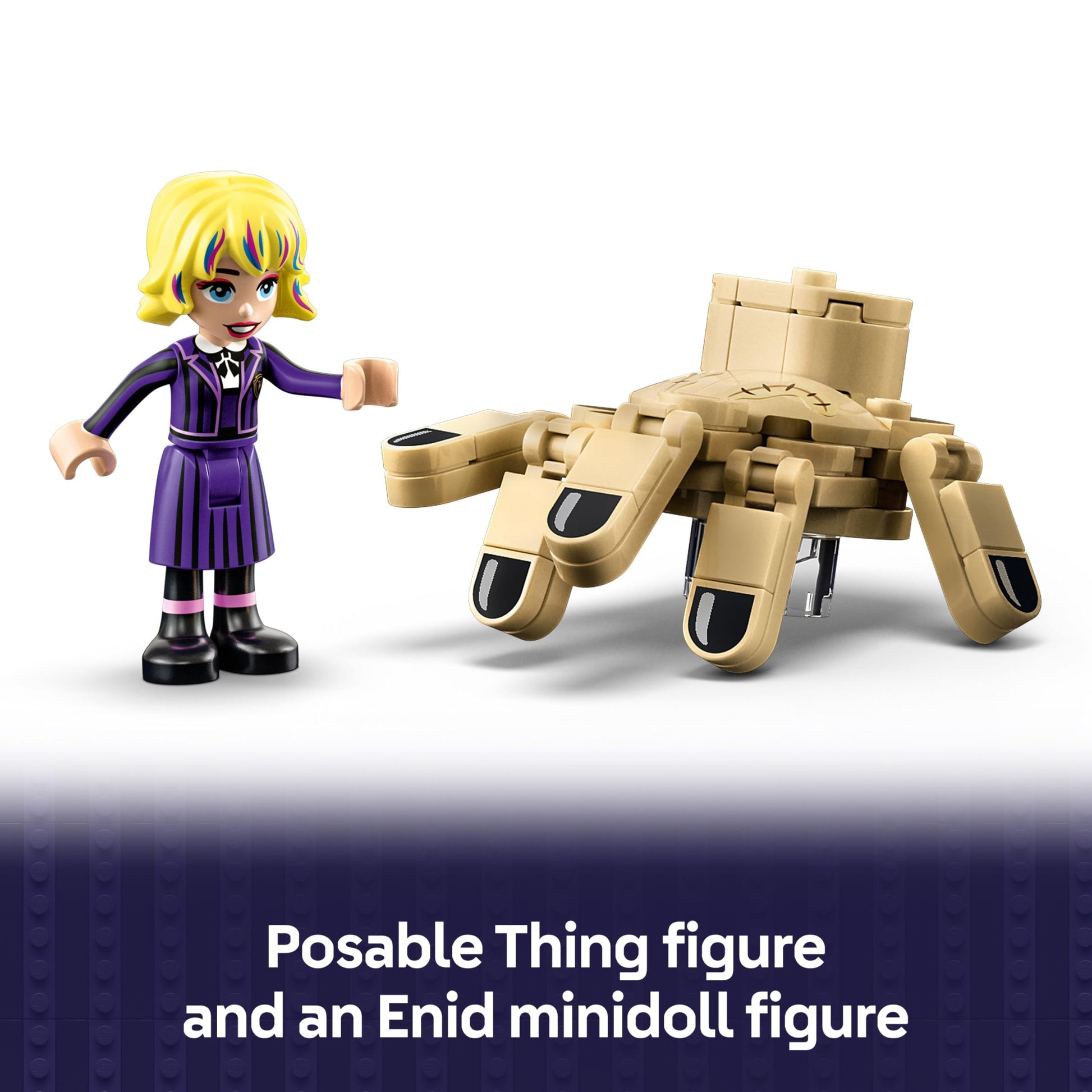 - Building toy trunk with Thing and Enid – Thing’s Apartment makes a great Halloween gift for Wednesday TV series fans aged 10 plus and comes with 2 characters and an opening trunk for play or display