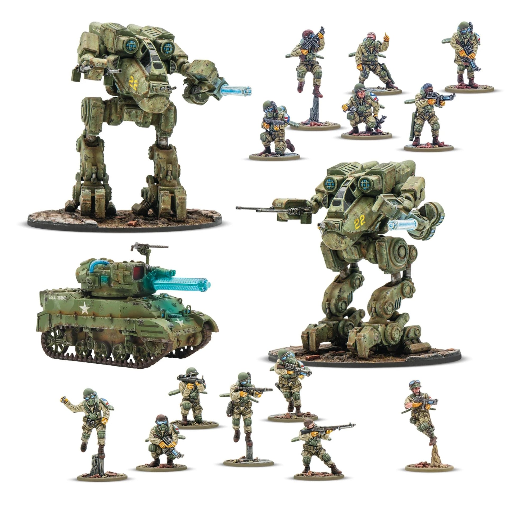This starter army is the perfect way to begin your Konflikt '47 United States collection, giving you a battle-ready force packed with the latest technology in one box. It’s also the first place you can get your hands on two brand new war machines, before they go on individual sale later.